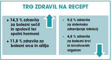 (za 14,3 %) in zdravila za bolezni srca in ožilja (za 11,8 %), razen pri zdravilih za sistemsko zdravljenje infekcij kjer se beleži padec (9,2 %) in pri zdravilih za bolezni krvi in krvotvornih organov (4,8 % padec).