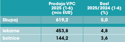 V prvi polovici leta 2025 je trg zdravil na recept v kanalu lekarn znašal 355,5 milijona evrov in je glede na lani zrasel za 4,8 %.
