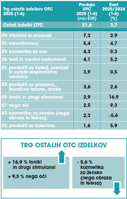 Vrednost trga ostalih OTC izdelkov je znašala je 51,6 milijonov evrov (3,7 % rast).